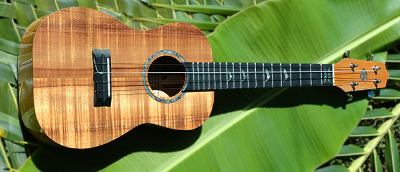 This is a Tenor Ukulele made on Kauai by Island Ukulele. The body is Full Curly Koa wood.