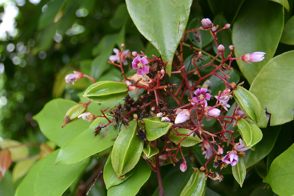 これはスターフルーツの花と、小さなスターフルーツの実です。
